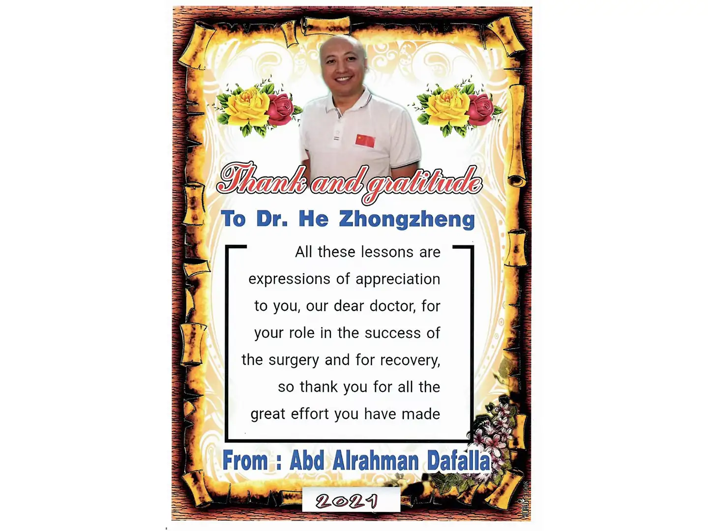 أكمل فترة تدريبه في مستشفى الصداقة الصينية اليابانية التابع لجامعة جيلين عام ٢٠٠٩، وحصل على درجة البكالوريوس، والتحق بجامعة تيانجين الطبية في العام نفسه.